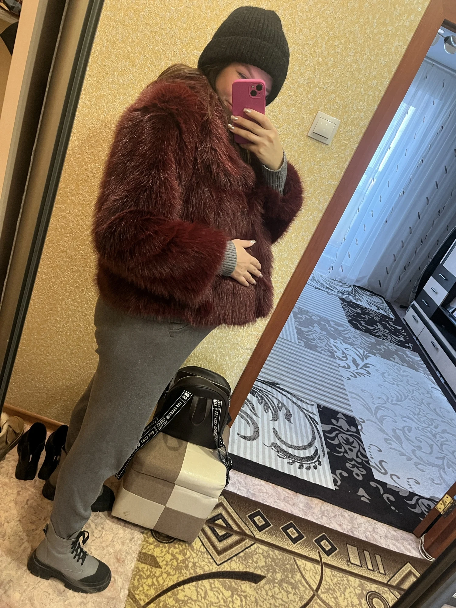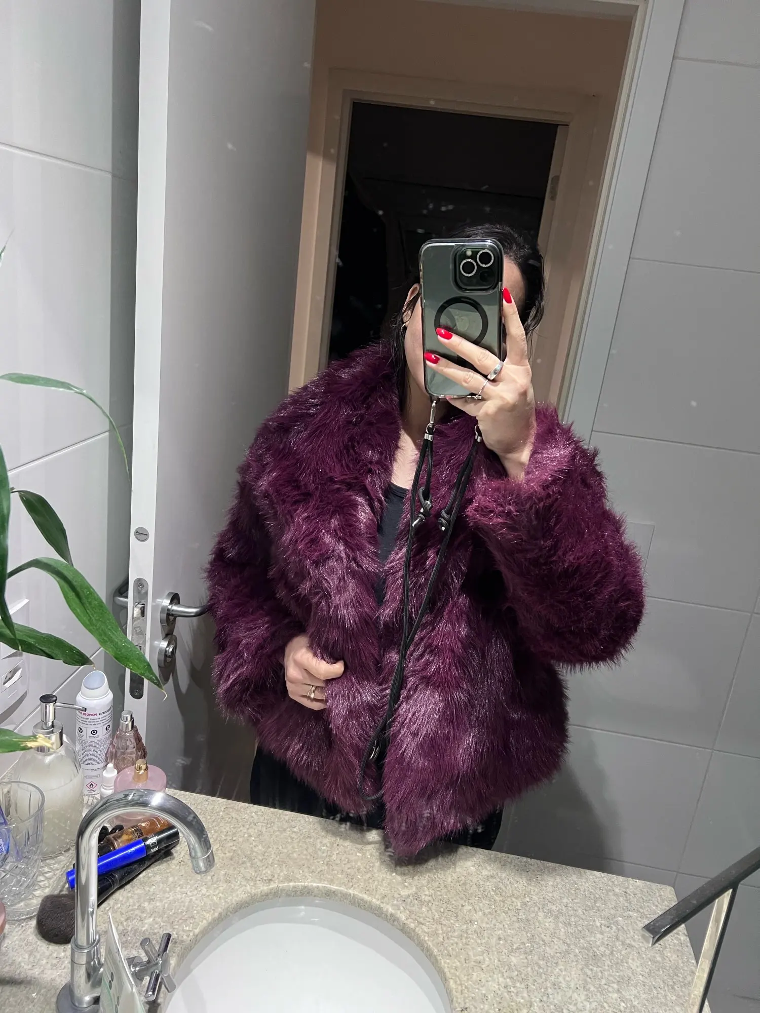 Deep burgundy fur that catches the light and the eye. Sophisticated drama, perfect for evenings that call for presence and power.