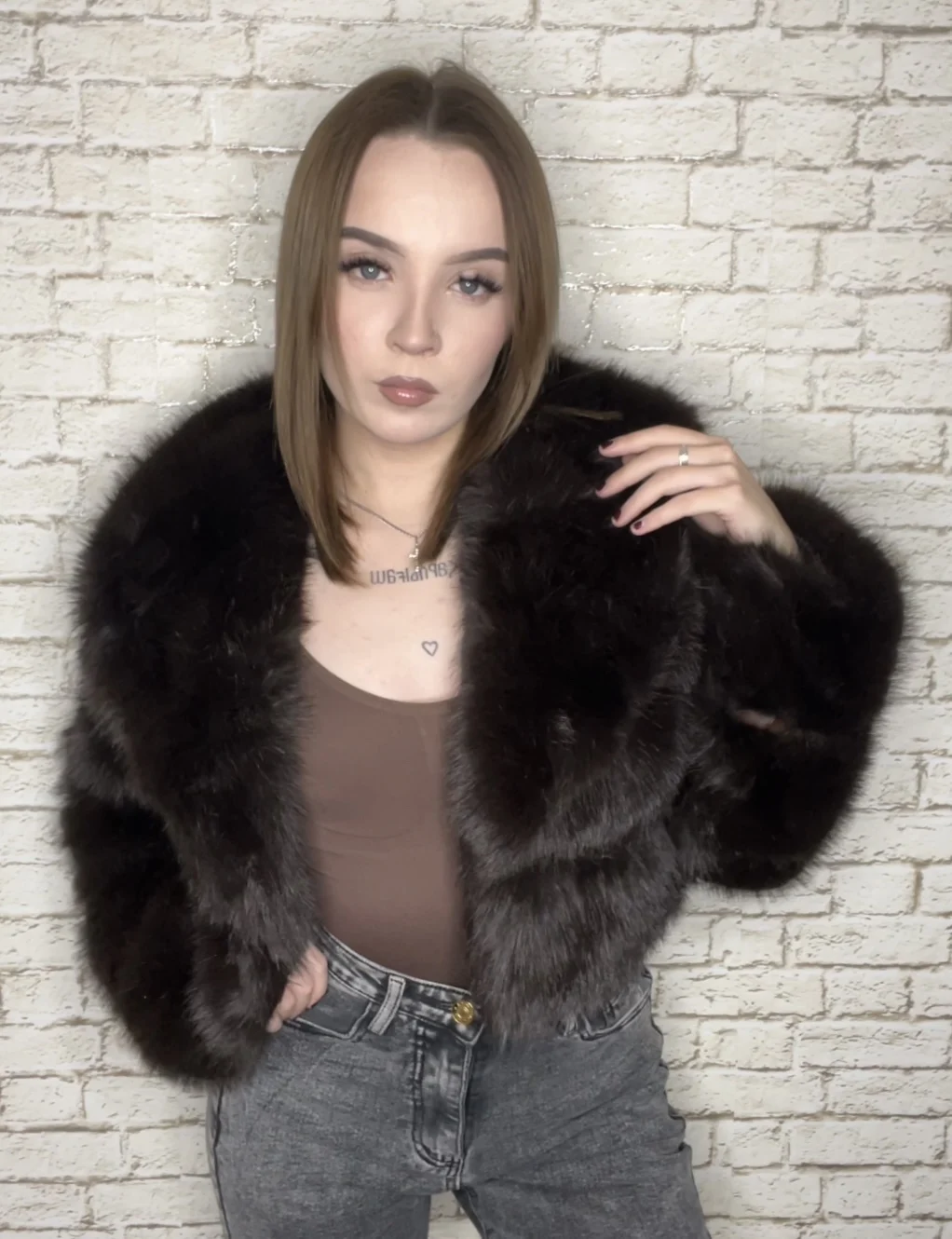 With sculpted panels and a dramatic wide collar, this cropped coat blends statement design with elevated softness. A head-turning piece that defines winter glamour.